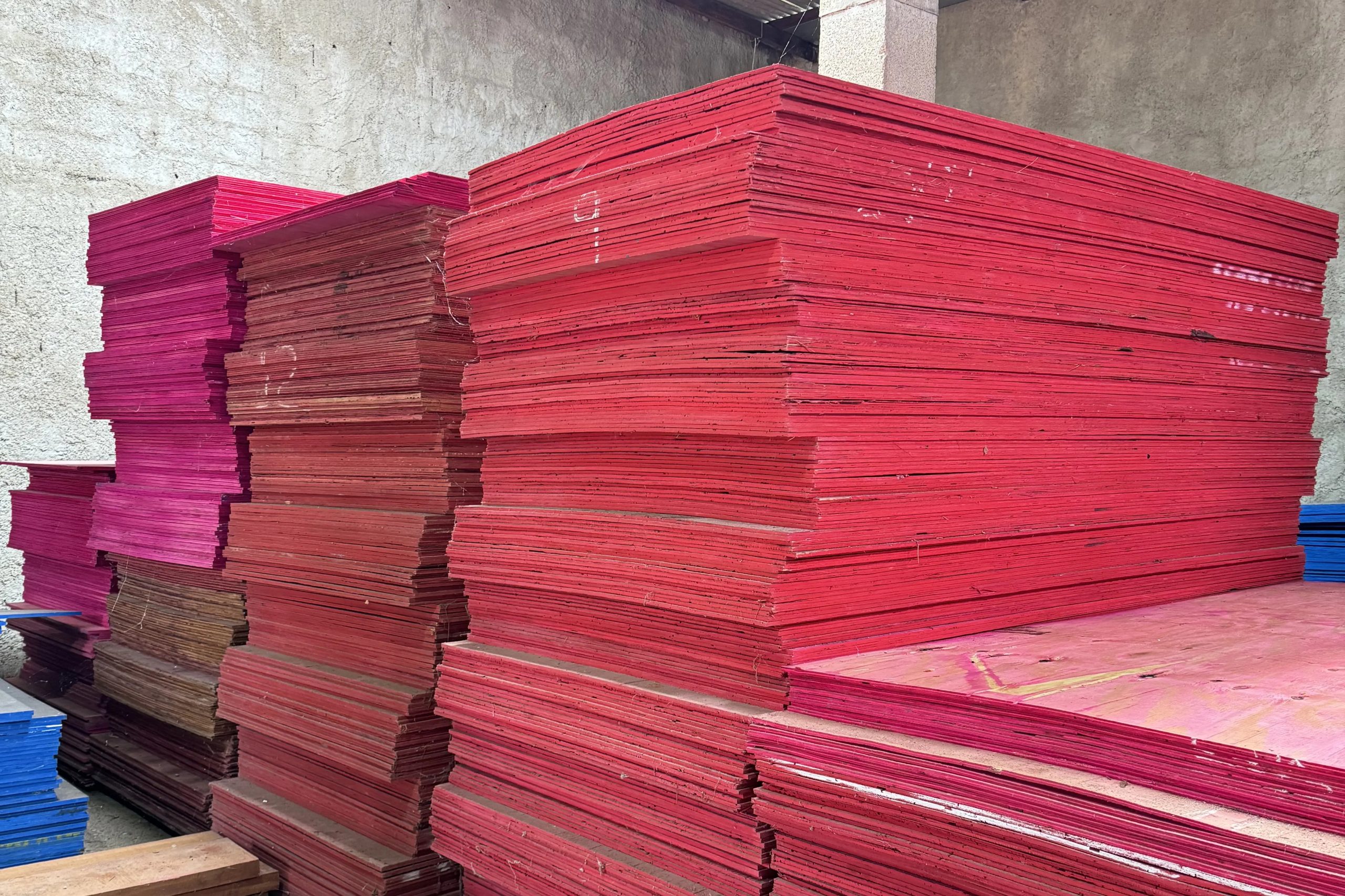 O madeirite plastificado recebe uma película fenólica (filme plástico) em sua superfície, o que garante maior resistência e acabamento mais uniforme.